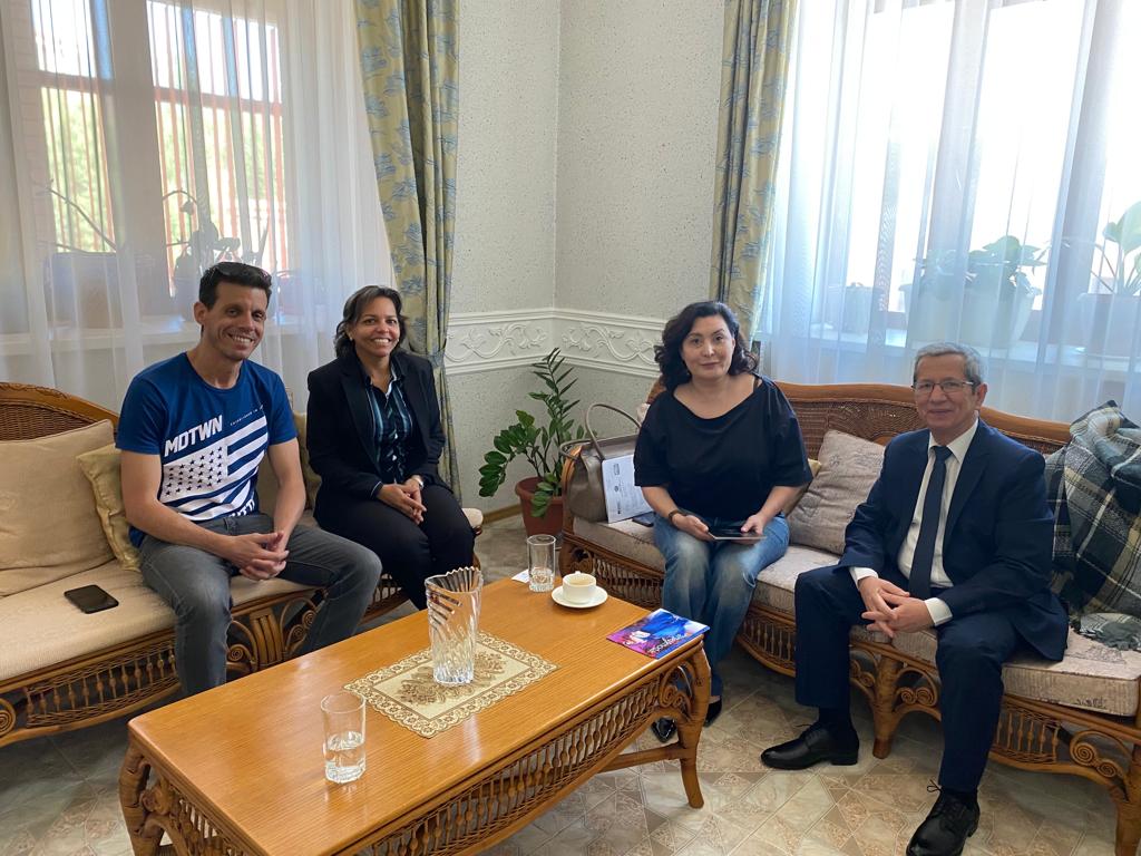 El embajador cubano comentó a la Sra. Gulmira sobre las potencialidades existentes para el intercambio entre ambos países en la esfera de la cultura. Mencionó la existencia del Centro Nacional de Escuelas de Arte (CNEArt), institución rectora de las Escuelas de Música, Ballet, Danza, Teatro, Circo y Bellas Artes de Cuba, y del proyecto “Arte y Moda”, que combina varias expresiones artísticas.
