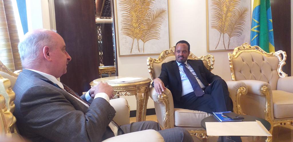 Addis Abeba, 21 de mayo de 2024. El embajador de Cuba en Etiopía, Jorge Lefebre Nicolás, sostuvo un encuentro con el ministro de finanzas de Etiopía, Sr. Ahmed Shide, en el que intercambiaron temas de interés de la agenda bilateral.
