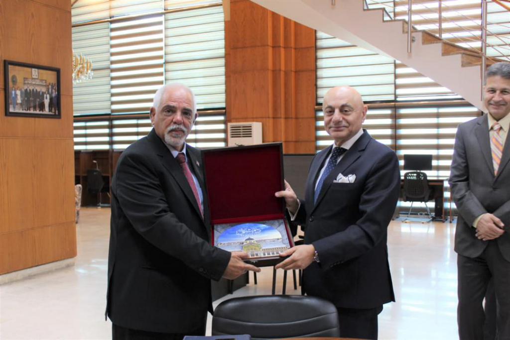 Allí, el diplomático cubano sostuvo ameno intercambio con el director de dicha institución, el Embajador Dr. Imad Mustafa.