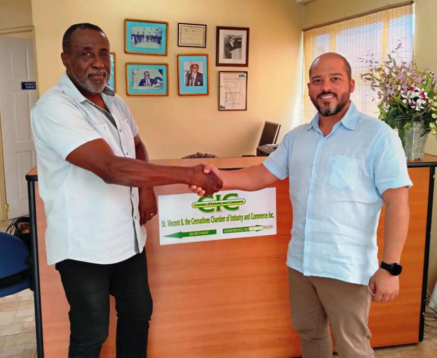 Kingstown, 3 de mayo de 2024. El embajador de Cuba en San Vicente y las Granadinas visitó la sede de la Cámara de Comercio de esta nación, ocasión en la que fue recibido por su director ejecutivo, Anthony Regisford.