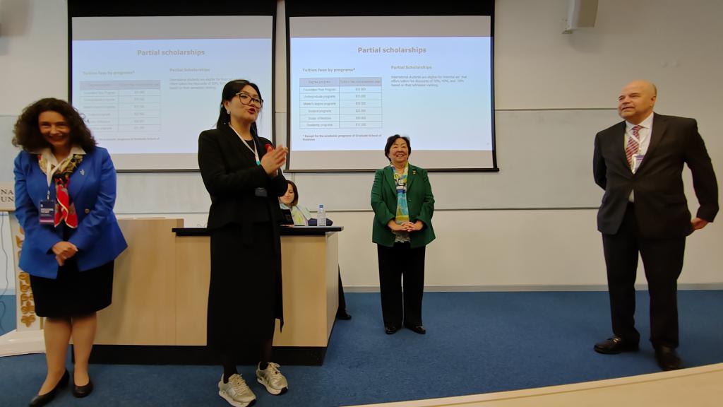 Astaná, 14 de septiembre de 2024. El Embajador de Cuba en Kazajstán, Oscar Santana León, acompañado por la Encargada de Asuntos Consulares, Neudys Casanova Mendoza, visitaron la Universidad Nazarbayev, invitados por su vicepresidenta, Kadisha Dairova, con motivo del Día de las Puertas Abiertas de este centro docente de altos estudios.