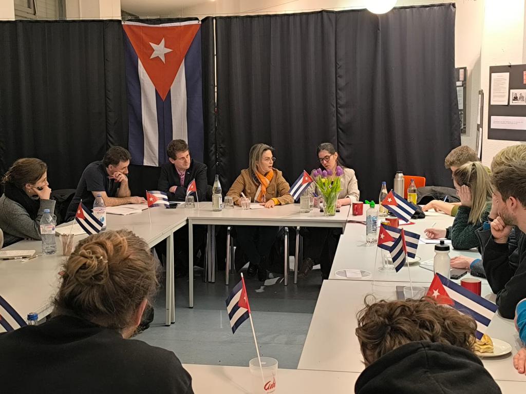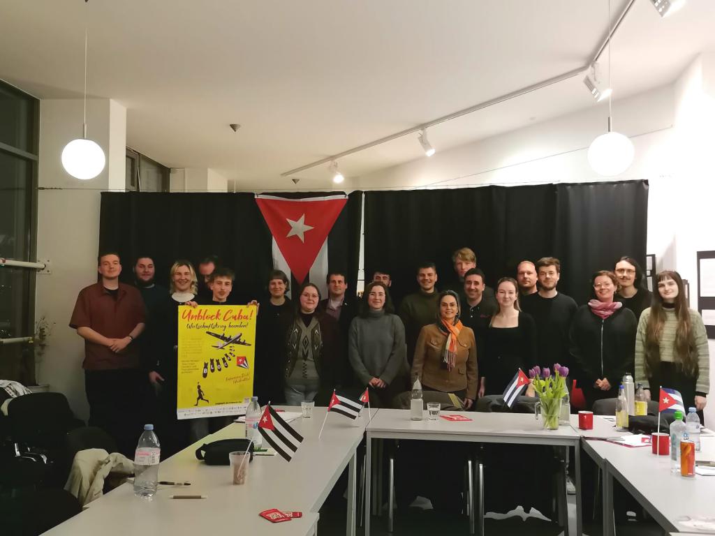 Berlín, 9 de marzo de 2024. La noche del sábado fue propicia para un encuentro de 25 jóvenes con la Embajadora de Cuba en Alemania. El objetivo del encuentro fue intercambiar sobre la actualidad cubana. La Embajadora estuvo acompañada por el Consejero Miguel Torres.