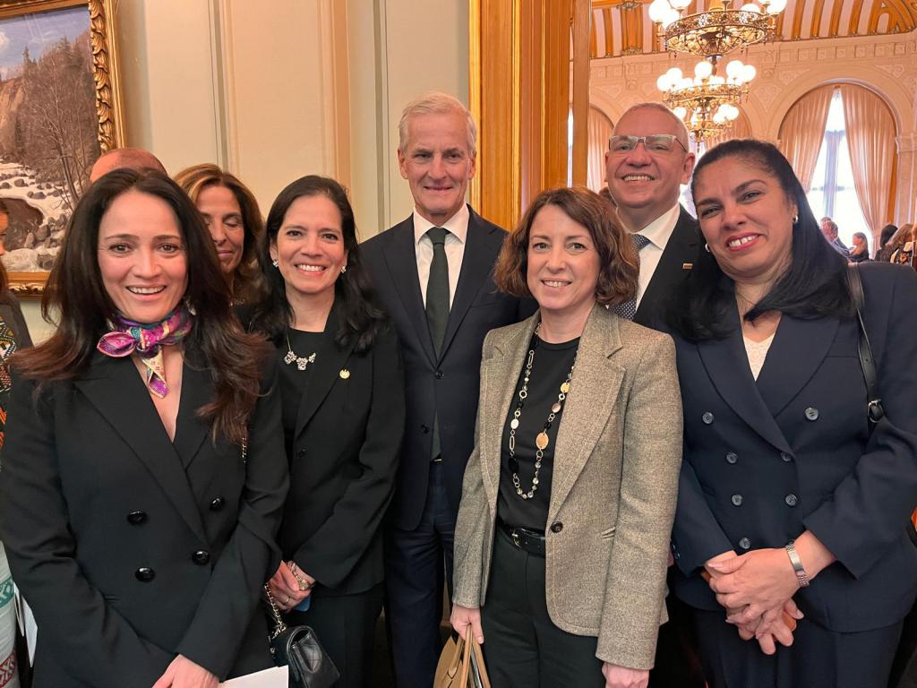 Oslo, 8 de octubre de 2024. El pasado día 2 de octubre, durante la recepción que tuvo lugar al término de la inauguración de Estado del 169 período de sesiones del Storting (Parlamento de Noruega), la embajadora de Cuba, Maité Rivero Torres, junto a sus colegas del Cuerpo Diplomático, tuvo la oportunidad de saludar e interactuar con personalidades noruegas relevantes, entre ellas el primer ministro, Jonas Gahr Støre, y el segundo vicepresidente del Storting, Nils T. Bjørke, del Partido Centro (SP), reelegido para tal cargo en la sesión constitutiva del órgano legislativo que tuvo lugar el 1ro de octubre. (Embacuba Noruega)