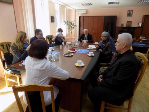 La diplomática cubana fue recibida por su director Oleksei Arsenyuk y Oxana Astrova, asesora de la Ministra de Politica Social, entre otros directivos.