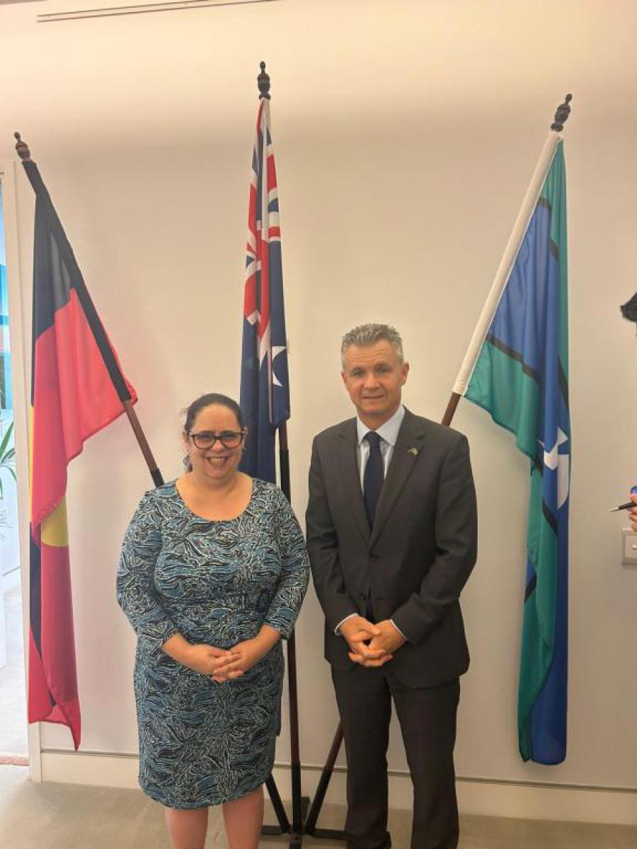 Diéguez transmitió el reconocimiento al ministro asistente de Relaciones Exteriores Matt Thistlethwaite, quien la recibió junto a funcionarios de la división de América Latina de la cancillería australiana con motivo del término de su misión.