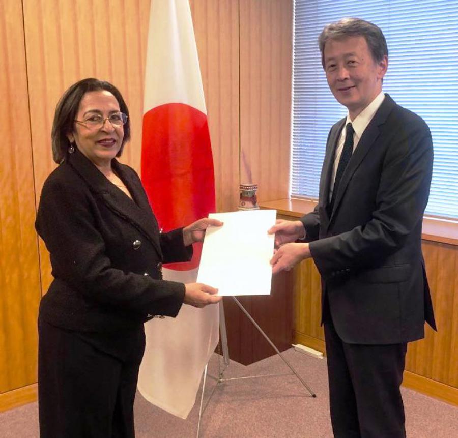 Tokio, 7 de diciembre de 2023.- La nueva Embajadora de Cuba en Japón, Gisela García, presentó este jueves las Copias de Estilo de las Cartas Credenciales al viceministro administrativo de Relaciones Exteriores, Masataka Okano.