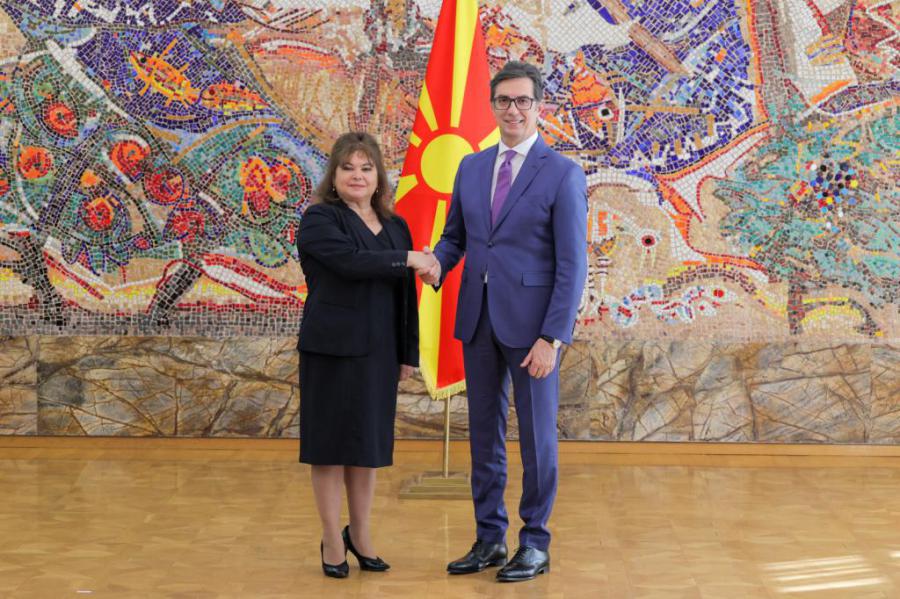 Skopje, 27 de septiembre de 2023. El Presidente de la República de Macedonia del Norte, Excmo. Sr. Stevo Pendarovski recibió hoy, en ceremonia solemne, en la sede de la presidencia de ese país, a la nueva Embajadora de Cuba, Marieta García Jordán, en ocasión de la presentación de las Cartas Credenciales que la acreditan como Embajadora Extraordinaria y Plenipotenciaria de la República de Cuba ante la República de Macedonia del Norte.