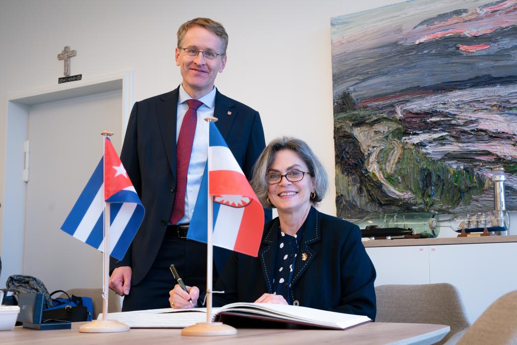Durante dicha visita, la Embajadora tuvo la oportunidad de reunirse con el primer ministro, Daniel Günther, la presidenta del Parlamento Regional, Kristina Herbst y el director para negocios internacionales de la Cámara de Comercio de Kiel, Werner Koopmann. En todos los encuentros se patentizó la voluntad de ampliar la cooperación con Cuba en diversas esferas, principalmente la comercial y la cultural.