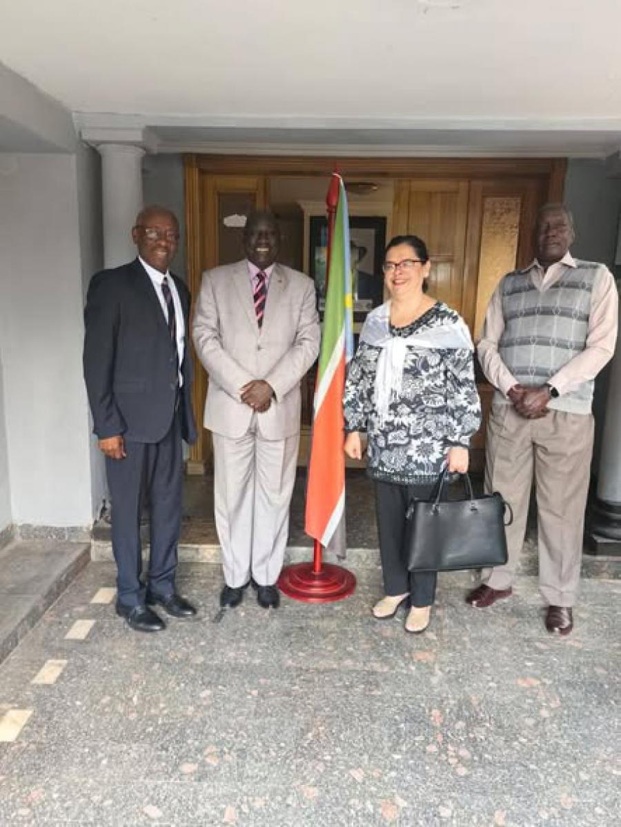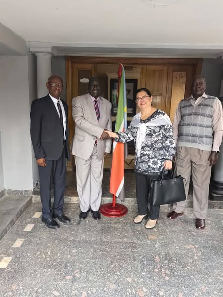 Addis Abeba, 12 de marzo de 2026.- La Embajadora de la República de Cuba en Etiopía y designada concurrente ante la República de Sudán del Sur, Meylin Suarez Álvarez, junto al Embajador de Cuba ante la Unión Africana, Lucas Domingo Hernández, realizaron una visita de cortesía al nuevo Embajador de la República de Sudán del Sur ante Etiopía y la Unión Africana, Sr. Baak Valentino Wol.