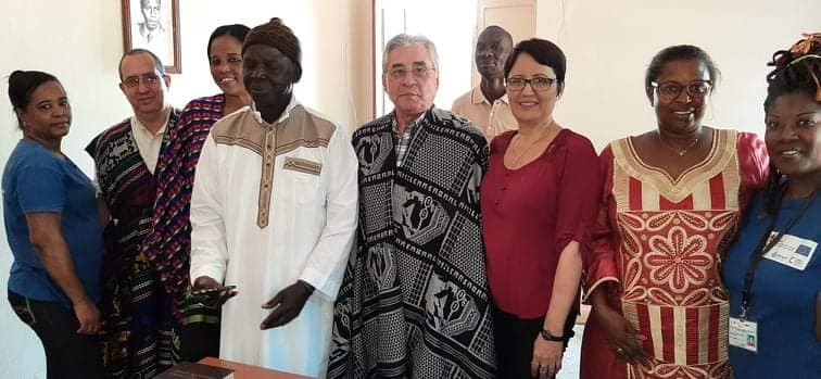 En el día de ayer la Misión Diplomática Cubana en Guinea Bissau, representada por su Embajador Raúl de la Peña Silva y la Dirección de la Brigada Médica, realizamos visita de trabajo a la distante Región de Tombalí, donde se desempeñan las colaboradoras cubanas Dra Norma Bandera Fisher y la Lic. Elena Hernández Alfonso. El momento fue propicio para sostener importante intercambio con el Gobernador Isidro Isnaba, con Aminata Silá, Secretária Administrativa Regional y con el Dr.Vanesio Sanca Maniche,Director del Hospital Regional Catió, así como otros directivos. En el encuentro se ratificó la solidaridad entre los dos pueblos y se rememoró la historia de la colaboración con profundo sentimiento de reconocimiento y obsequian Paño de Pente. Recorrimos la principal Institución de salud, donde se constata la gratitud de los profesionales guinenses que allí laboran y muy especialmente, de los únicos 4 médicos del Hospital, formados por profesores cubanos en la Facultad de Medicina Raúl Díaz Arguelles. #CubaEduca #CubaPorLaSalud