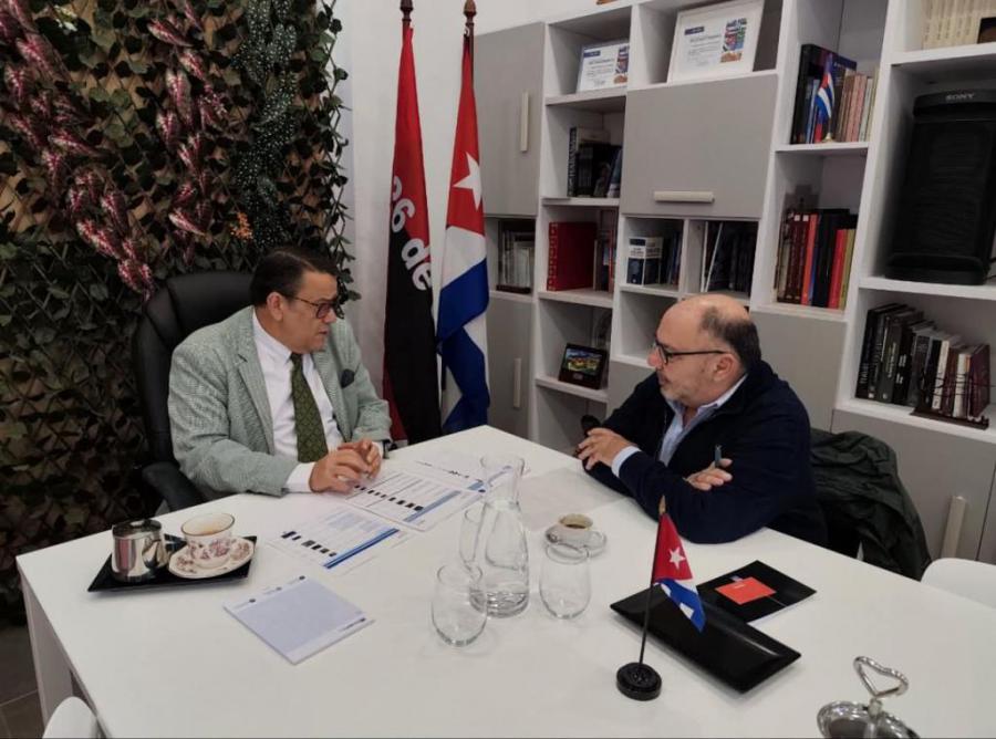 Durante el intercambio sostenido, el Cónsul General de Cuba en Barcelona, Alejandro Castro Medina, intercambió información actualizada sobre las nuevas medidas del gobierno, dirigidas a ampliar la participación de los cubanos residentes en el exterior en la economía del país, las oportunidades para desarrollar proyectos de inversión, así como otros temas de interés afines a la normativa jurídica actual.