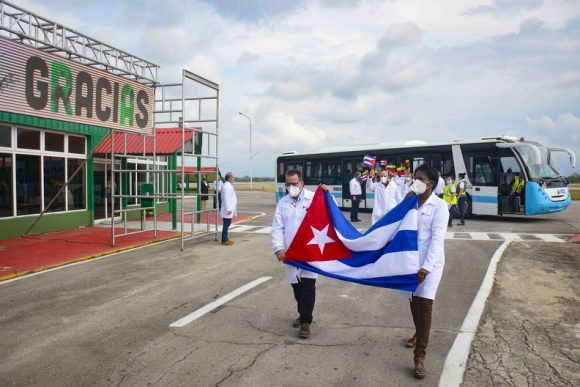 Unos 48 colaboradores del Contingente Internacional de Médicos Especializados en Situaciones de Desastres y Graves Epidemias Henry Reeve, que brindaban asistencia en Venezuela en el combate al SARS-CoV-2, regresaron este viernes al país.