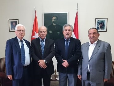 El embajador Jorge León Cruz, recibió una delegación del Frente Democrático para la Liberación de Palestina, presidida por su Representante en Beirut y Vice Presidente del Consejo Nacional Palestino, Ali Faysal, e integrada por los miembros del Buró Político Khalidat Hussein y Suhail Al Natour.