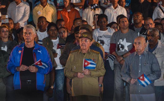 En la primera fila del mar de pueblo estaban también José Ramón Machado Ventura y Miguel Díaz-Canel Bermúdez