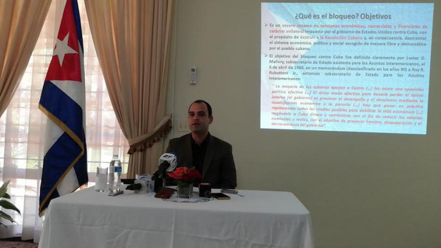 En su exposición, que contó con la cobertura de más de 10 medios nacionales de distinto formato, el diplomático enfatizó el carácter unilateral y genocida de esta política impuesta desde hace casi seis décadas, la cual constituye el principal obstáculo para el desarrollo económico y social del país. Denunció también su aplicación extraterritorial y su esencia violatoria de los derechos humanos, del derecho internacional y de los principios y propósitos de la Carta de la Naciones Unidas.