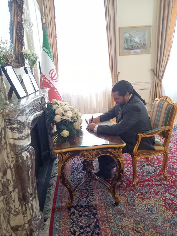 El diplomático cubano fue recibido por el Sr. Abbas Yazdani, Primer Consejero en esa Misión, al que trasladó de parte del Estado y Gobierno cubanos, las más sentidas condolencias al Gobierno y pueblo iraníes, así como a los familiares y amigos de las víctimas de la agresión antes mencionada.