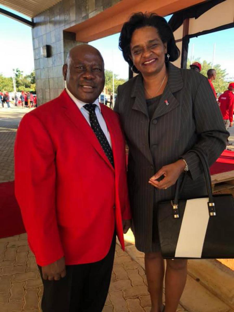 La Embajadora Patricia L. Pego Guerra saluda al Sr. Shaw Kgathi, Honorable Ministro de Defensa, Justicia y Seguridad de Botswana, también Vice Secretario General del Partido Democrático (BDP), en el acto de lanzamiento del Manifiesto del BDP, con vistas a las próximas elecciones generales.