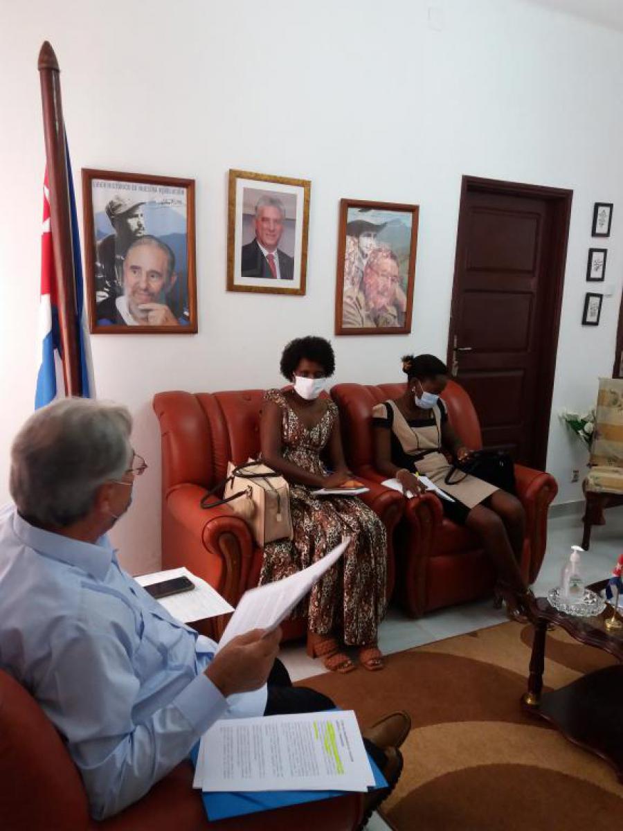 El embajador de Cuba sostuvo un encuentro, en la sede diplomática, con dirigentes de organizaciones juveniles de Guinea Bissau. Durante el intercambio, se abordaron aspectos relativos al buen nivel de las relaciones bilaterales entre Cuba y Guinea Bissau; la ocasión fue propicia para exhortar a estrechar las relaciones entre las organizaciones juveniles de ambos países, así como para promover el Encuentro Juvenil Internacional “Ideas que son banderas” convocado por la Unión de Jóvenes Comunistas y organizaciones estudiantiles y sociales cubanas, a celebrarse de manera virtual del 24 al 26 de este mes, en homenaje al Comandante en jefe Fidel Castro Ruz en ocasión del cuarto aniversario de su desaparición física.