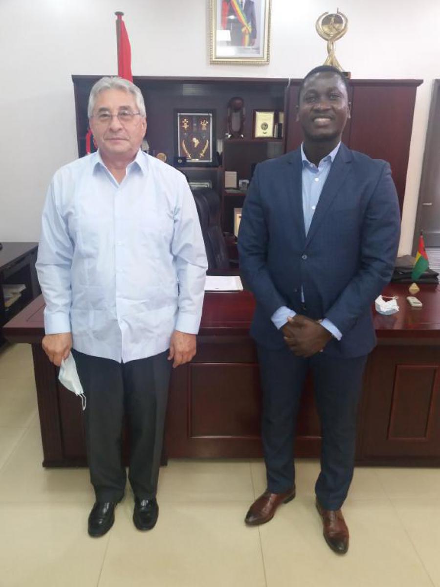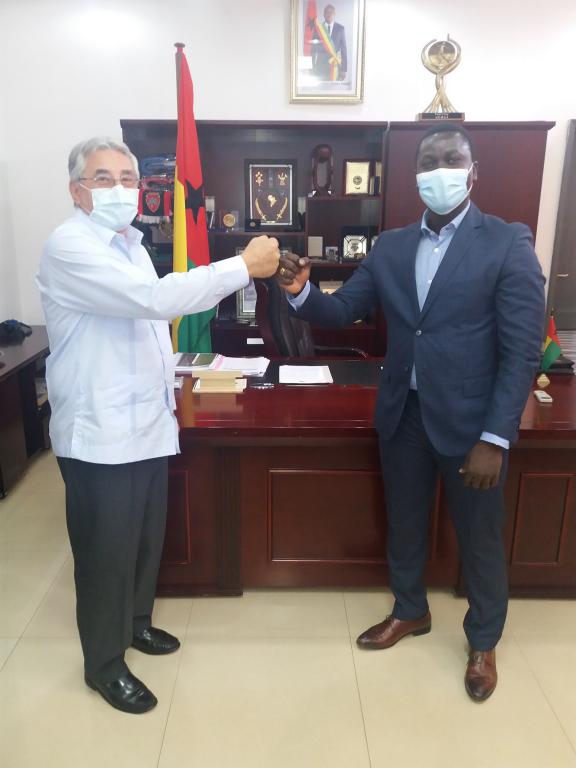 Bissau 21 mayo de 2021. – El Secretario de Juventud y Deporte del gobierno de Guinea Bissau Lic. Florentino Fernando Dias, sostuvo un encuentro con el embajador de Cuba, Dr. C Raúl de la Peña Silva. En la ocasión el dirigente guineense resaltó la solidaridad que Cuba ha brindado a los pueblos del mundo, y en especial al de Guinea Bissau. El Sr. Florentino agradeció la colaboración que presta Cuba en la esfera de la salud y destacó que en los momentos más críticos de la pandemia envió una Brigada Médica a apoyar a los especialistas de la salud del país en el enfrentamiento a la COVID-19.