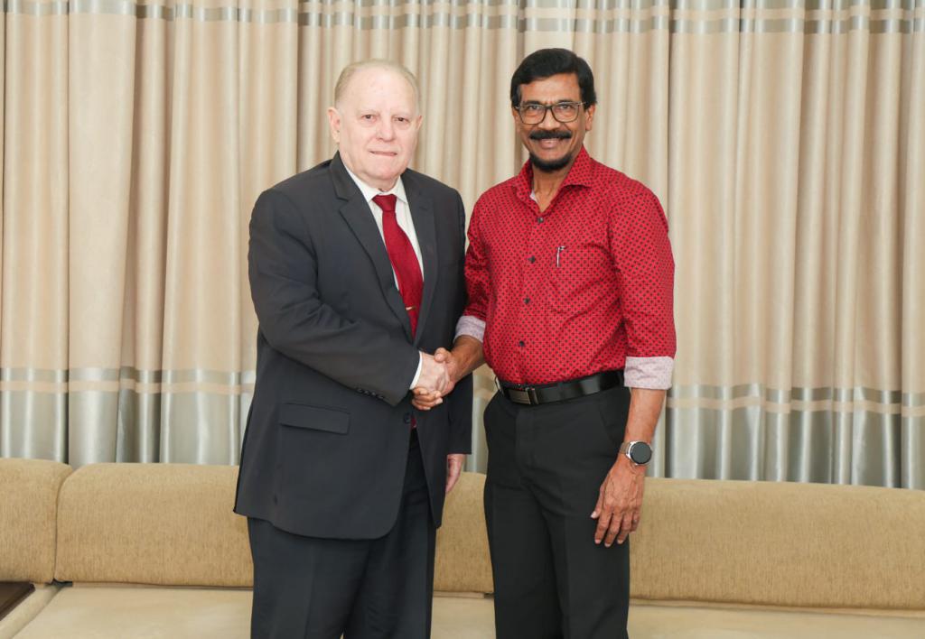 Colombo, 28 de enero de 2025. El embajador de Cuba en Sri Lanka, Andrés Marcelo González Garrido fue recibido en la sede del partido JVP, Janatha Vimukthi Peramuna, 'Frente de Liberación Popular’, por su secretario general Tilvin Silva.