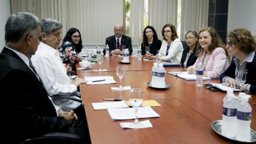 La Habana, 9 de noviembre de 2022.- El viceministro Carlos Fernández de Cossío recibió en el Ministerio de Relaciones Exteriores a Rena Bitter, secretaria adjunta del Departamento de Estado para Temas Consulares, y a Ur Mendoza Jaddou, directora de los Servicios de Ciudadanía e Inmigración del Departamento de Seguridad Interna de los Estados Unidos.