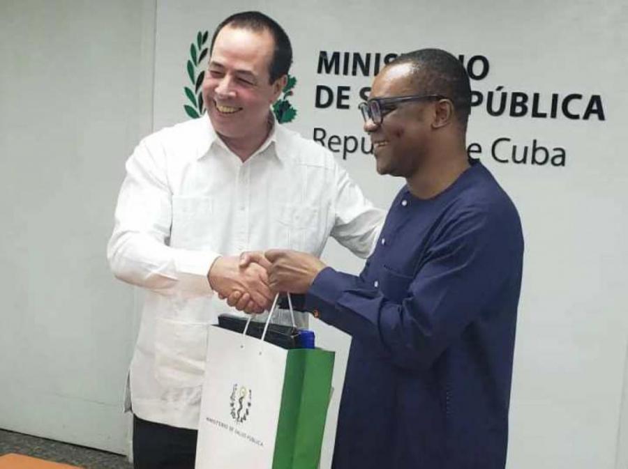 El Ministro de Sanidad y Bienestar Social de Guinea Ecuatorial , Sr. Mitoha Ondo Ayecaba cumplió una visita de 24 horas a Cuba el pasado viernes 26 de septiembre y su primera parada fue con su homólogo de Salud Pública de Cuba, el Dr. José Angel Portal Miranda.