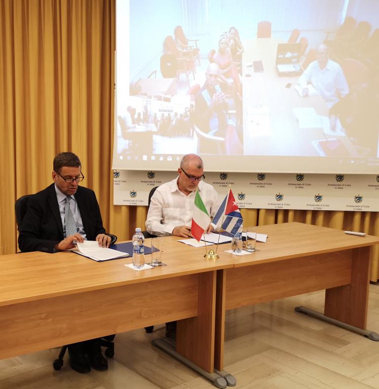 Roma, 3 de julio 2019.- El conglomerado científico-productivo cubano Biocubafarma y la Agencia Nacional para las Nuevas Tecnologías, la Energía y el Desarrollo Económico Sostenible (ENEA), entidad italiana dirigida a la investigación e innovación tecnológica, firmaron el 3 de julio de 2019, en la sede de la Embajada de Cuba en Roma, un Memorándum de Entendimiento, que propicia las bases para nuevas oportunidades de desarrollo conjunto de soluciones biofarmacéuticas.