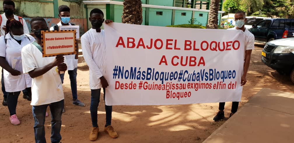 La sede diplomática cubana en Guinea Bissau y los profesores y estudiantes de la Facultad de Medicina cubano-guineense “Raúl Días Argüelles” iniciaron el día de hoy 25 de marzo, condenando el injusto bloqueo económico, comercial y financiero impuesto por el gobierno de los Estados Unidos a Cuba.
