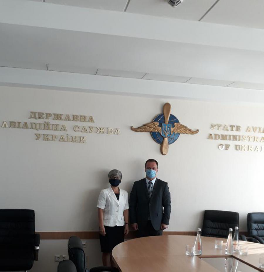 Kiev, 10 de julio de 2020- El Presidente de la Administración del Servicio Estatal de la Aviación de Ucrania (SEAU), Alexander Bilchuk recibió a la embajadora de Cuba en Ucrania, Natacha Díaz Aguilera en la sede del Ministerio de Infraestructura.