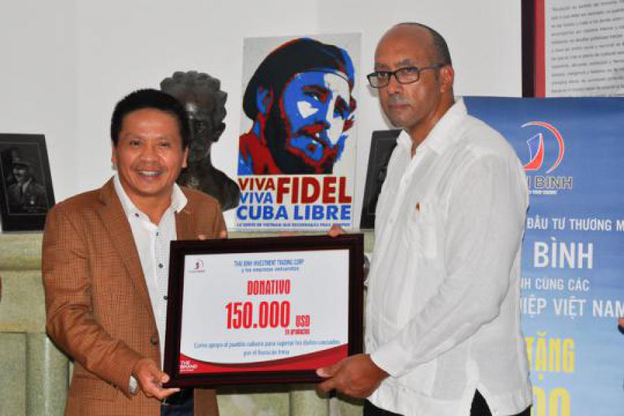 Esta no es una simple aportación económica, es un gesto que hace honor al espíritu solidario de los vietnamitas, en especial hacia un pueblo que sentimos como hermano, dijo el presidente de la entidad, Tran Thant Tu, al entregar un cheque simbólico al embajador Herminio López Díaz.