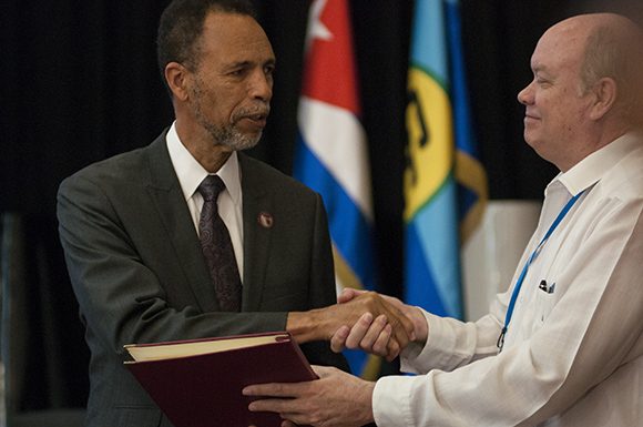 En el marco de la V Reunión Ministerial, el ministro de Comercio Exterior y la Inversión Extranjera, Rodrigo Malmierca Díaz, entregó el Segundo Protocolo del Acuerdo de Cooperación Económica entre CARICOM y la República de Cuba a Colin Granderson, secretario general asistente de este mecanismo regional.