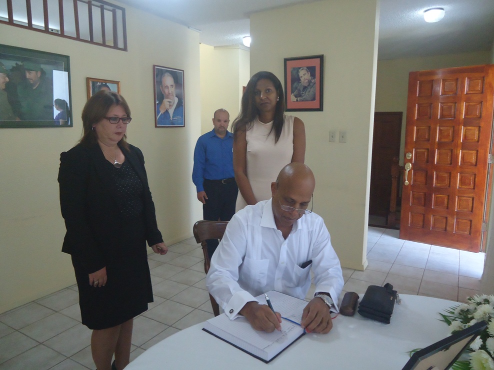 Barrow, quien visitó junto a su esposa la Embajada cubana el 28 de noviembre para firmar el libro de condolencias abierto en la sede diplomática expresa en su misiva: