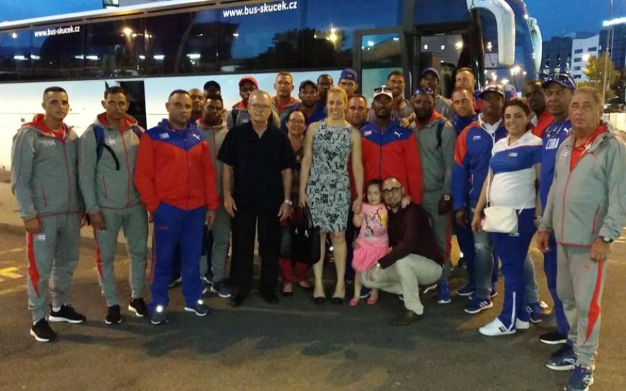 REPUBLICA CHECA, 12 de junio de 2019. – El embajador cubano, Danilo Alonso; su esposa, Tamara Acosta; y la tercera secretaria, Evelyn León, dieron la bienvenida en el aeropuerto de Praga, al equipo cubano de softbol, para participar en el Campeonato Mundial de esta disciplina en República Checa, del 13 al 24 de junio (Cubaminrex-Embacuba República Checa).