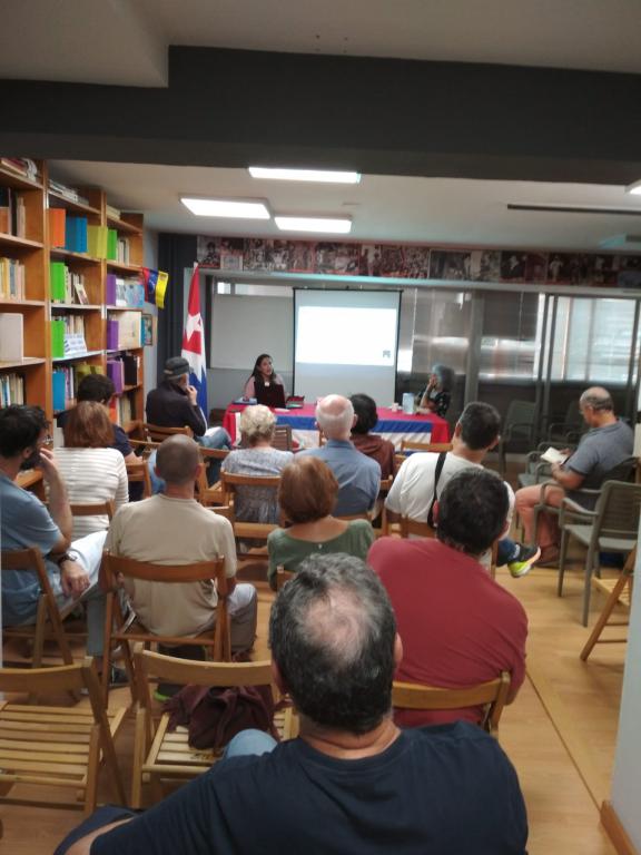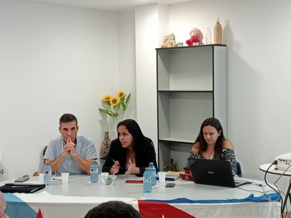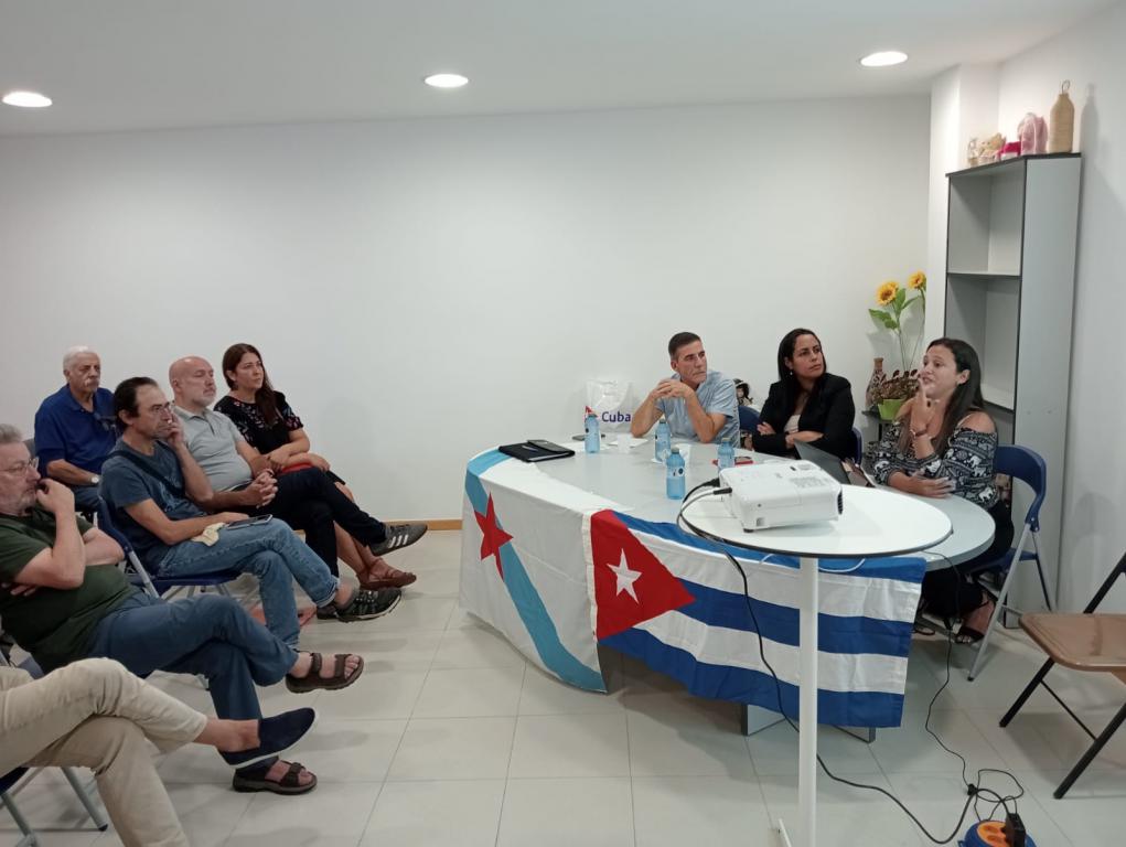 Santiago de Compostela, 11 de octubre de 2023: En el marco de la Jornada de la Cultura cubana y de la visita a Galicia, Asturias y Cantabria, de Claudia Bernal, especialista de comercio exterior del Centro de Ingeniería Genética y Biotecnología (CIGB), tuvieron lugar provechosos intercambios sobre Cuba, el desarrollo de la ciencia cubana y los efectos del Bloqueo.