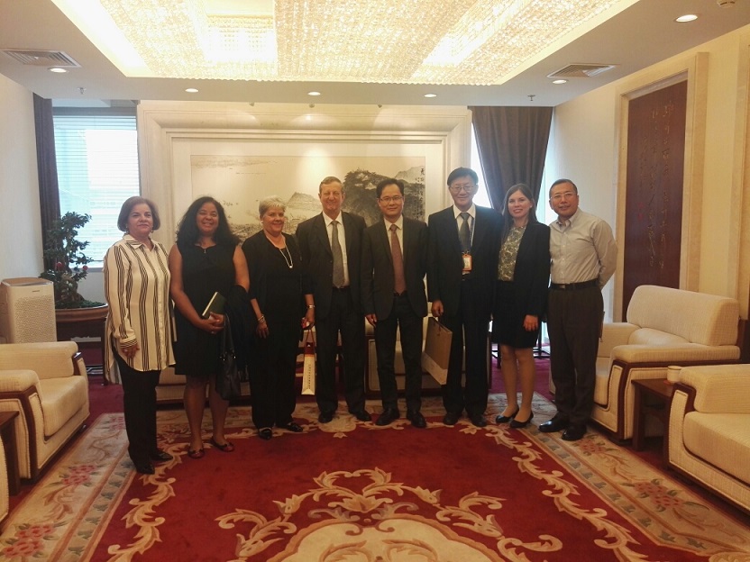 Beijing, 20 de abril de 2018- En el marco de la visita a China de una delegación del Consejo Nacional de Artes Plásticas de Cuba (CNAP), para participar en la ceremonia de inauguración de la exposición de arte cubano “El viaje más largo”, sostuvieron en la mañana de hoy un encuentro el embajador cubano en ese país, Miguel Ángel Ramírez Ramos y la vicepresidenta del CNAP, Teresa Aleida Domínguez Vidal, con el presidente del Grupo de Artes y Entretenimiento de China, Li Jinsheng, institución co-organizadora de la exhibición.