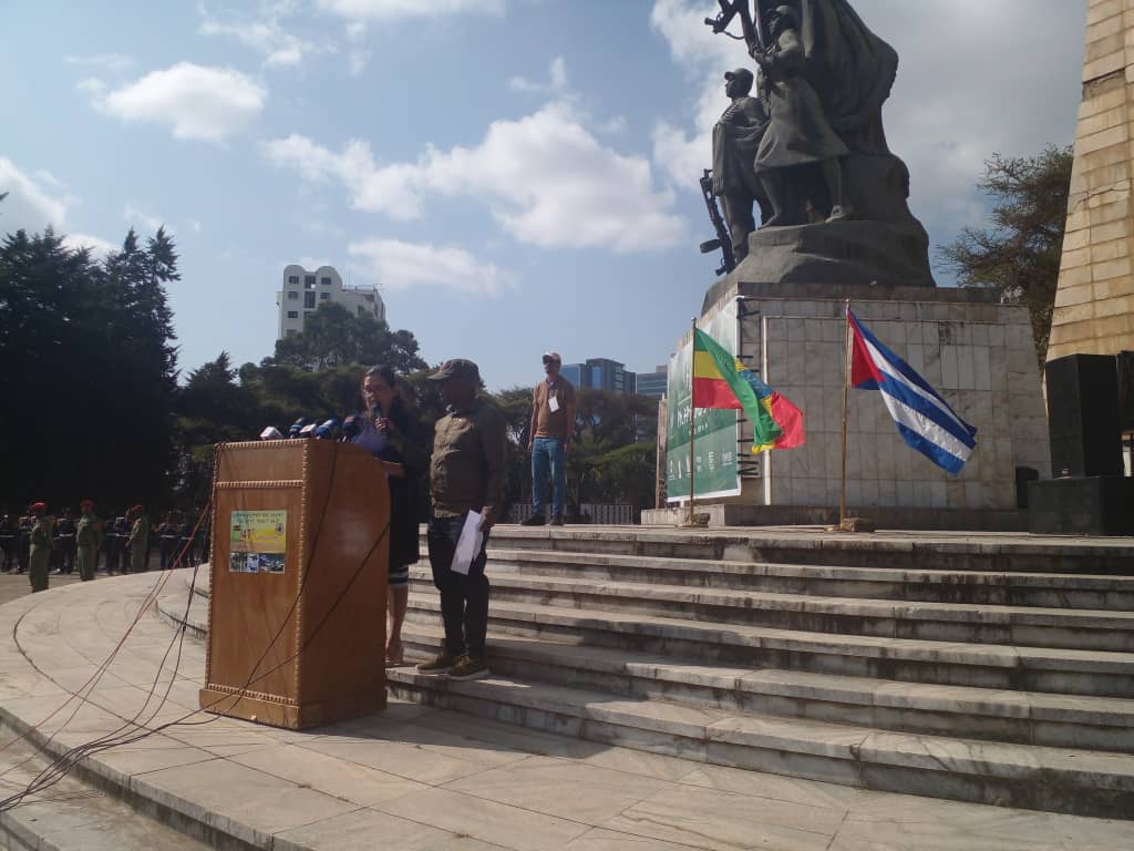 La embajadora de Cuba en Etiopía, Meylin Suárez Álvarez, destacó la importancia de realizar la actividad en el parque que honra la memoria de los 163 combatientes cubanos caídos en la lucha por la soberanía de Etiopía. Resaltó que este lugar simboliza los lazos de sangre y amistad profunda entre ambos pueblos, forjados en el campo de batalla. En su discurso, recordó las palabras del líder histórico de la Revolución Cubana, Fidel Castro: