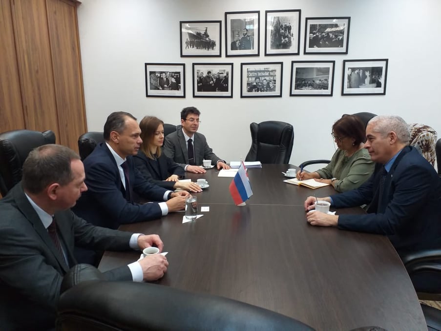 Moscú 28 de enero.-El Embajador de Cuba en la Federación de Rusia Gerardo Peñalver Portal sostuvo un encuentro con el nuevo Jefe de la Representación en la isla de la Compañía petrolera Zarubezhneft, Igor Onechko.