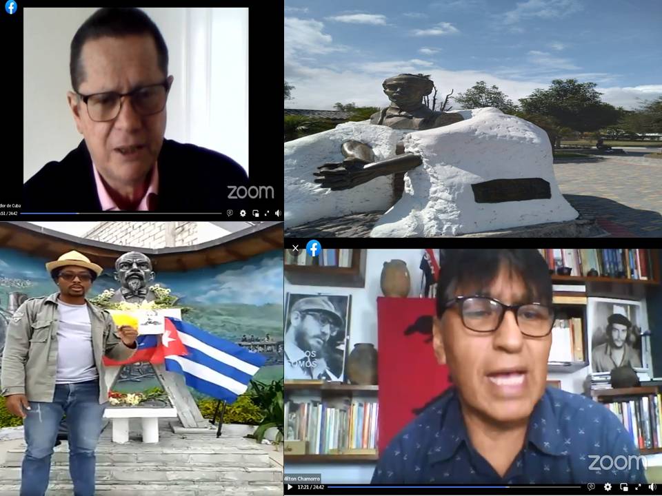 Quito, 28 de enero de 2022.- Integrantes del Movimiento de Amistad y Solidaridad con Cuba, representantes de la Embajada cubana en Quito y dirigentes sociales y políticos de la provincia Imbabura rindieron merecido homenaje al Héroe Nacional de Cuba, José Martí, y al General ecuatoriano Eloy Alfaro. El acto de recordación tuvo lugar en la ciudad de Ibarra y se transmitió a través de Facebook Live y de la plataforma digital ZOOM.