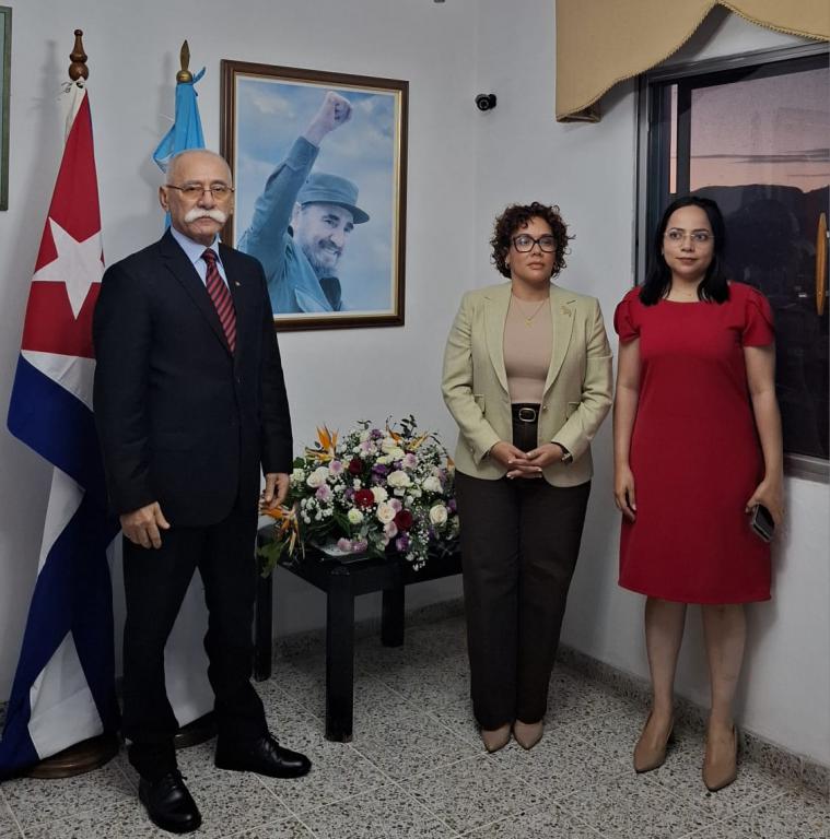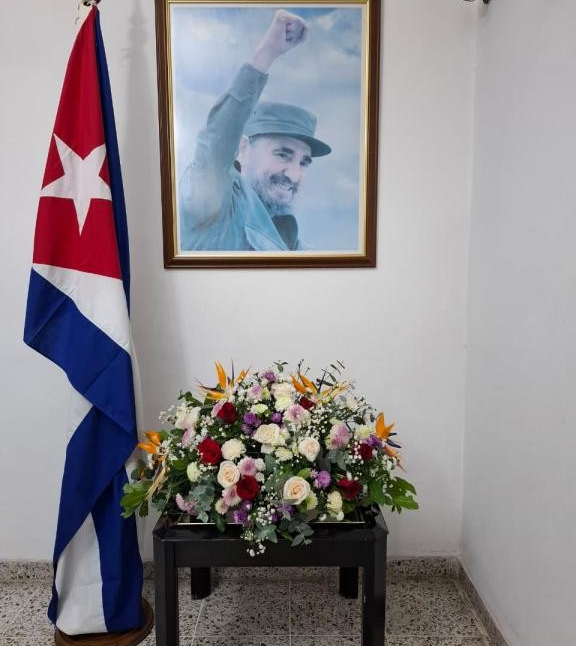 Como colofón del sentido homenaje, se colocó una ofrenda floral ante la imagen de Fidel Castro, símbolo de respeto e imperecedera gratitud hacia su legado.