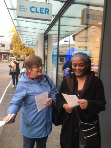 Más de 7,000 folletos fueron distribuidos el martes frente a las sucursales de la entidad bancaria en las ciudades de Ginebra, Neuchâtel, Yverdon-les-Bains, Delémont, Locarno, Lugano, Berna, Basilea, Winterthur y Zúrich.