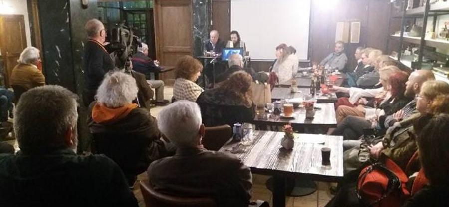 También se presentó el video de la entrevista que le realizó el periodista Alekos Chatzikostas a la embajadora de Cuba en Grecia Zelmys María Domínguez Cortina, durante su estancia en la ciudad de Trilofos, en Veria para la inauguración de la exposición Con Cuba en el corazón, con fotos del consejero de la misión Jose Oriol Marrero Martinez..