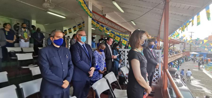 Por su parte, en sus palabras en el Acto y Ceremonia Militar por tan significativa fecha, el líder Vicentino agradeció la solidaridad y cooperación de Cuba a lo largo de todos estos años. En la actividad se encontraban presentes ministros, invitados especiales, representantes de varios sectores del pueblo vicentino y el Cuerpo Diplomático, entre ellos, el Embajador cubano, José M. Leyva Ventura.