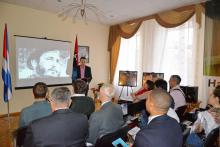 El representante del Comité “Stop Blokade Kubi”, Viacheslav Karpenko con una intervención conmovedora ilustró sobre los cambios ocurridos en Cuba después del triunfo de la Revolución, evocando las ideas y los principios de Fidel que hicieron posible esos cambios. Terminó su intervención con la frase: “Yo soy Fidel”.