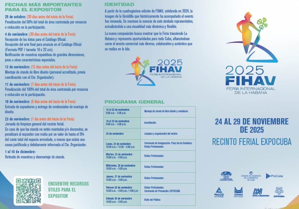 La Habana, 13 de noviembre de 2025. Del 24 al 29 de noviembre tendrá lugar la XLI Feria Internacional de La Habana (Fihav 2025), con el objetivo de intercambiar e informar al empresariado nacional y extranjero sobre oportunidades de negocio, así como el potencial productivo y exportador de Cuba.