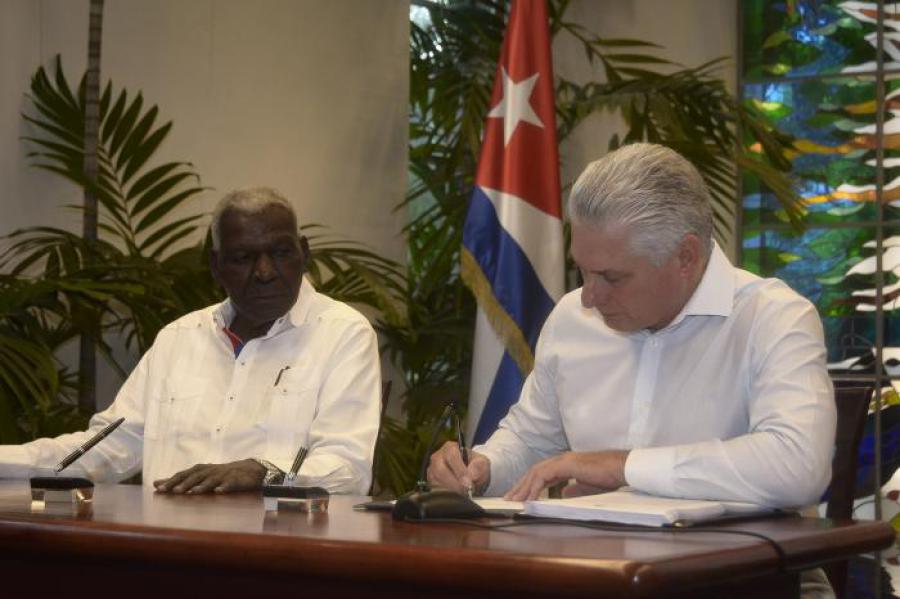 En el emblemático salón del Sol de América, en el Palacio de la Revolución, el Presidente de la Asamblea Nacional del Poder Popular y el Presidente de la República firmaron y refrendaron, respectivamente, el nuevo Código de las Familias.