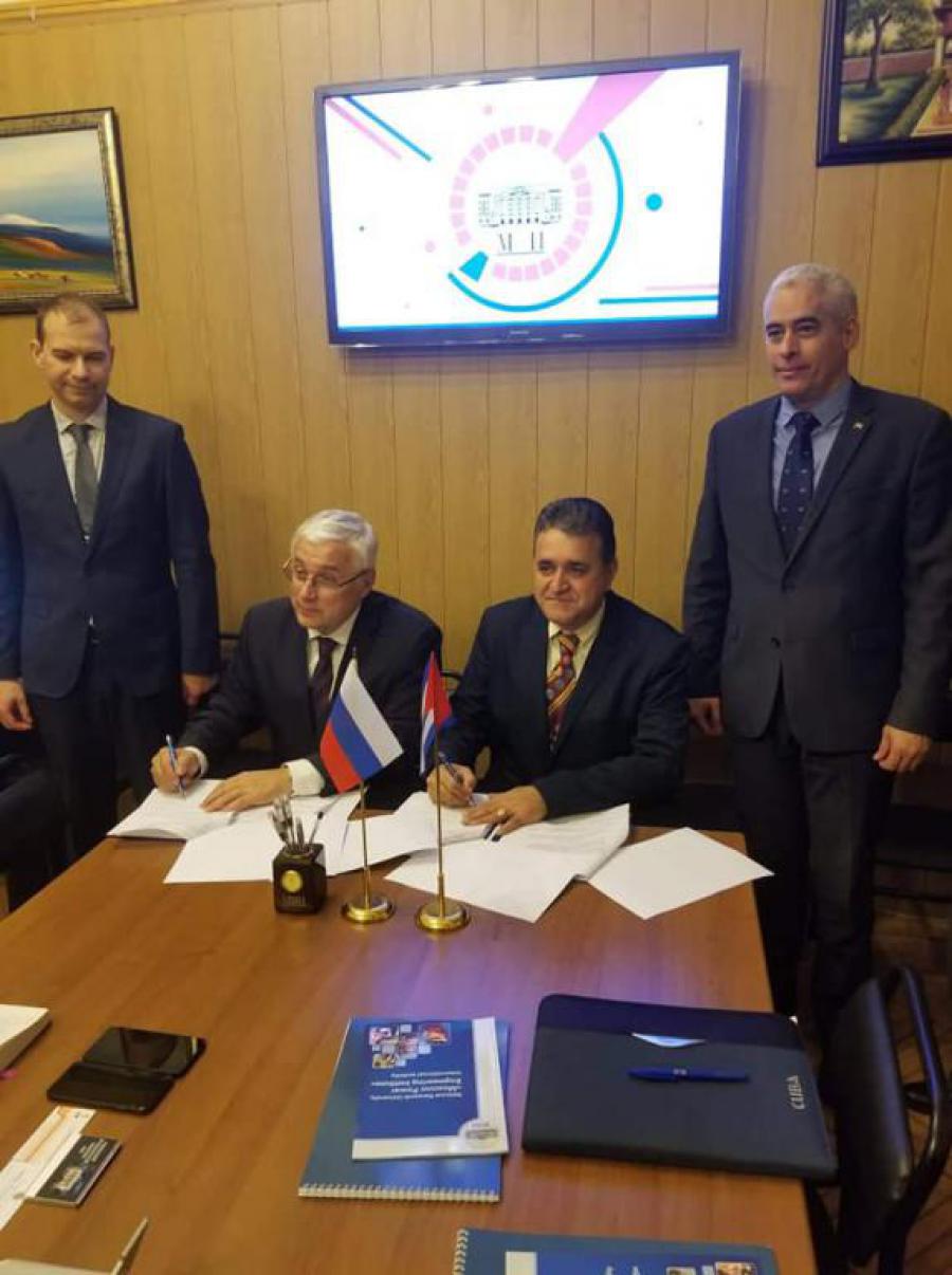 Moscú, 11 de noviembre.- El Director General de la Unión Eléctrica de Cuba, Armando Cepero y el Rector del Instituto de Energía de Moscú, (MEI) Nicolay Rogalev firmaron un convenio que posibilitará la formación de personal cubano en la universidad moscovita.