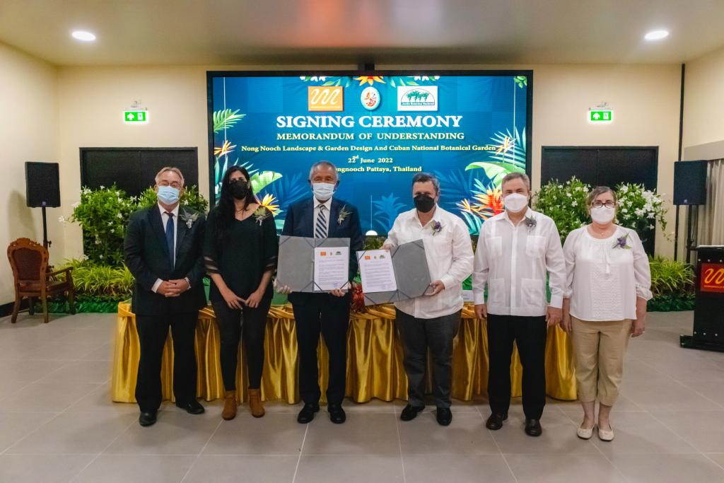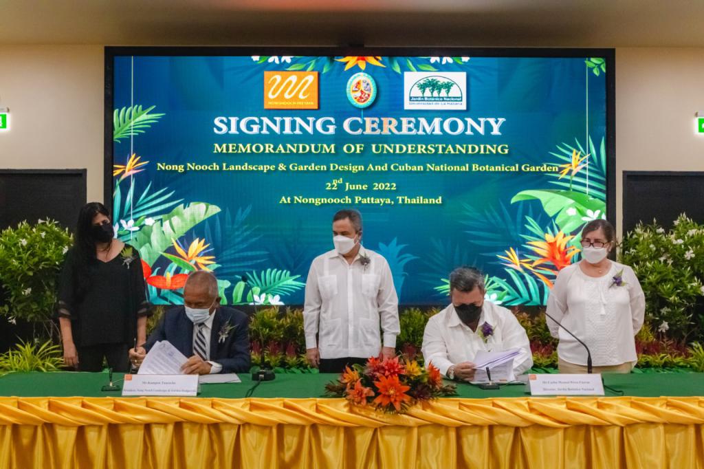 Pattaya, 22/6/2022.- El Presidente del Jardín Botánico Tropical Nong Nooch, del Reino de Tailandia, y el Director General del Jardín Botánico Nacional de la República de Cuba firmaron hoy en Tailandia un Memorando de Entendimiento dirigido a desarrollar capacidades con fines de investigación científica conjunta, uso sostenible y conservación de especies, en ceremonia que contó con la presencia del Embajador de la Mayor de las Antillas.