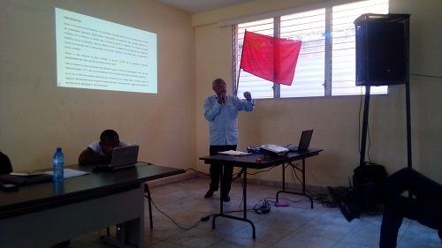 La parte central del fórum estuvo a cargo del Embajador cubano Luis Castillo Campos, quien ofreció una conferencia bajo el título: “El bloqueo de EE. UU contra Cuba, sus antecedentes y evolución ulterior”; presentación que permitió profundizar en la génesis de esta política genocida desde los primeros años del triunfo de la Revolución cubana y la temprana hostilidad de la política norteamericana en su interés por destruirla. Propio tiempo recorrió los elementos más significativos del informe de Cuba sobre bloqueo, con énfasis en las principales medidas emprendidas contra nuestro país por el gobierno de EE. UU que han afectado tangencialmente todos los sectores de nuestra vida económica y social, al término de lo cual quedó abierto un debate sobre el tema en el que respondió las preguntas de los participantes.