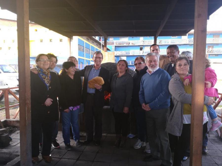 Iniciando su visita al municipio sureño de Coronel, el Embajador de Cuba Jorge Lamadrid Mascaró, acompañado del Primer Secretario Marcos Hernández Sosa y por Eloy Labañino Reyes, sostuvo un fraterno intercambio con vecinos de un barrio minero de este ilustre Municipio, en el que se le mostró la técnica del horneado del "pan minero", que pudo degustar junto a sus compañeros. En la amistosa reunión primó la excelente hospitalidad de esta comunidad y el magnífico producto del horno artesanal que constituyó fuente de alimentación para las hornadas de mineros chilenos que laboraron en las famosas minas locales de carbón, ya clausuradas. Desde este reporte, el agradecimiento del Embajador y sus acompañantes por tan cordial encuentro, en el que participó el Presidente del Consejo de Vecinos de la localidad, quien dio la bienvenida formal a los visitantes.