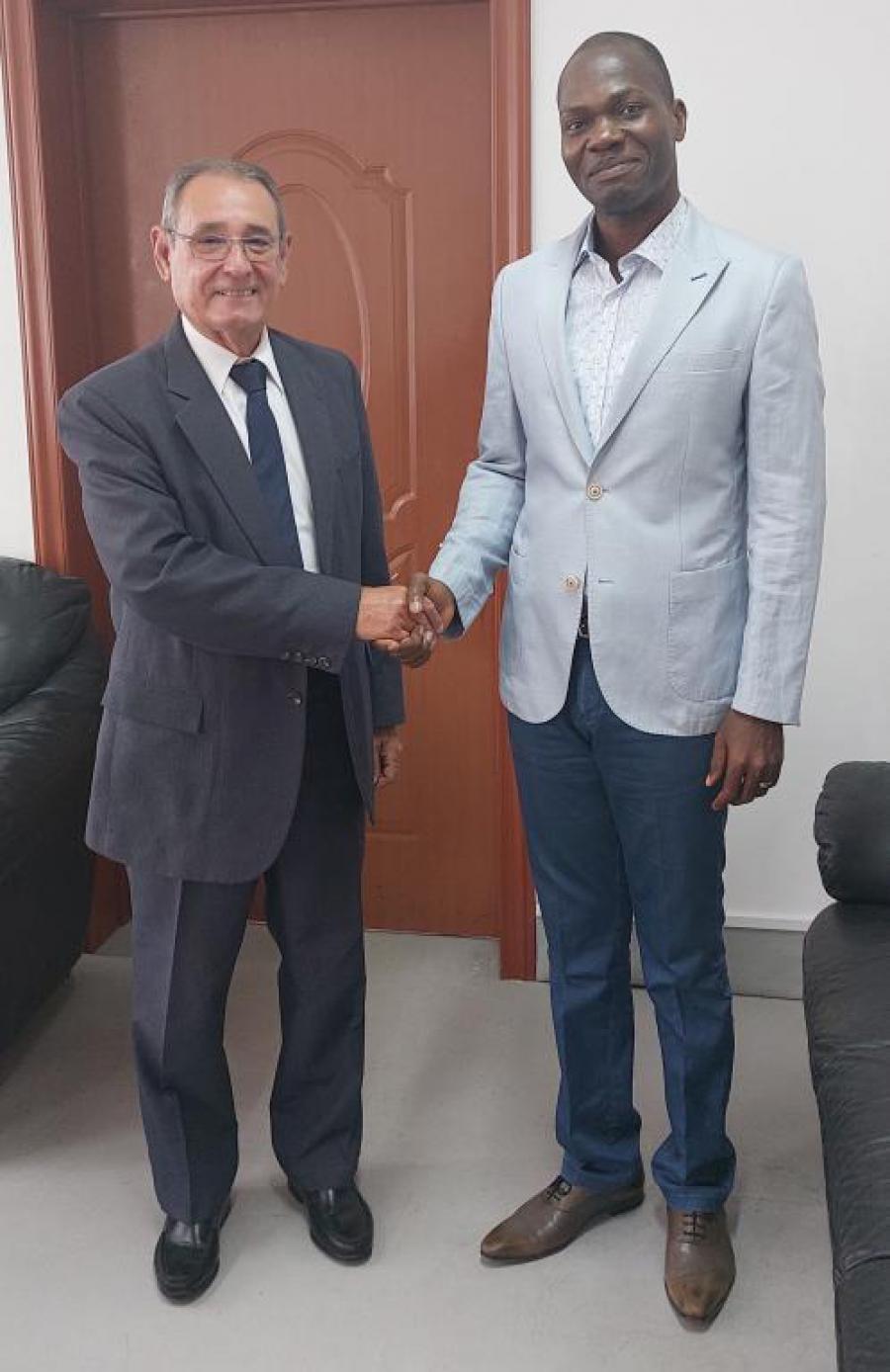 Cotonou, 5 de octubre del 2023.- Ricardo García Napoles, embajador de Cuba en la República de Benin, sostuvo un fructífero intercambio con el Director de Organismos Internacionales y Mantenimiento de la Paz del Ministerio de Relaciones Exteriores, el excelentísimo embajador, Mahouton Mathieu Hounkanrin. Durante el encuentro, el Embajador cubano agradeció la mención al bloqueo en el discurso de la delegación beninesa en la 78 AGNU, de la cual el Sr. Mahouton Mathieu Hounkanrin formó parte. Ambos diplomáticos aprovecharon la oportunidad para intercambiar sobre temas de interés común (CUBAMINREX/EMBACUBA BENIN)